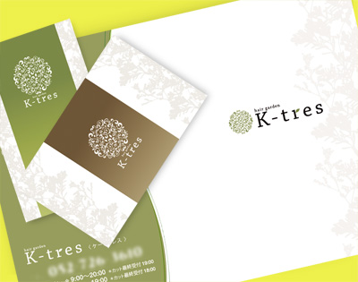 仕上がりは、サロン様のこだわりであった「オーガニック」というワードからのイメージと、素敵なロゴの雰囲気を崩さないよう、フライヤーからカードまで全体的に統一したデザインとなりました。