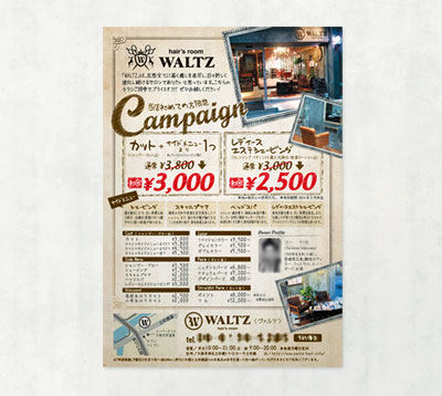 ニューオープンの際にもお手伝いさせていただいたサロン様より、シーズンキャンペーンのフライヤーのご依頼をいただきました。