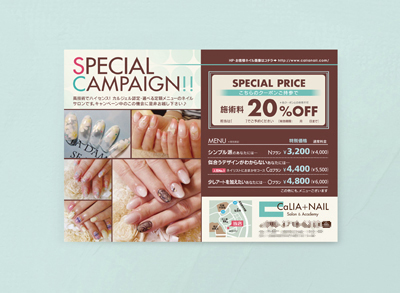 ネイルデザインを見せたいサロン様の場合は、お写真の枠数を増やしたりして対応いたします。
